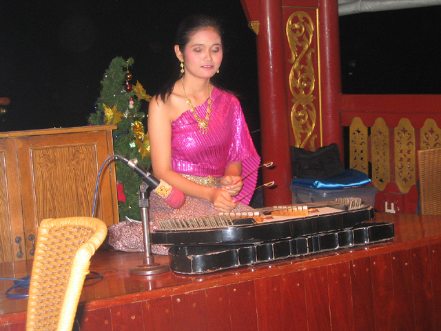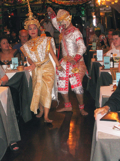 We take a dinner cruise on board a traditional Thai riverboat complete with musicians and dancers