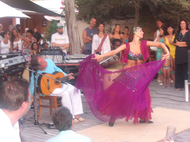 On our last evening we pack, put the suitcases in the car and head to the Blue Marlin to meet Cecilia and watch Paco Fernandez play his flamenco fusion, joined by a rapper from NYC, his keyboard and percussion players and a dancer. What a great evening. He is fantastic, the crowd was wonderful consisting of hippies, rich folk off the yachts in the harbor (the Marlin is on the beach), locals and other visitors