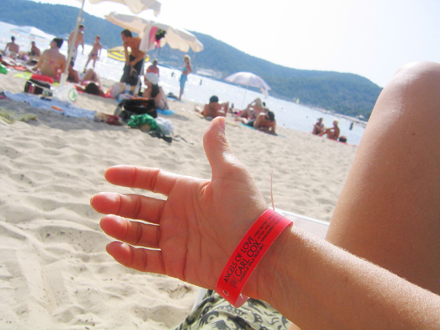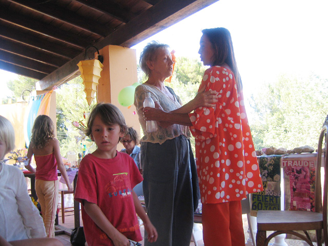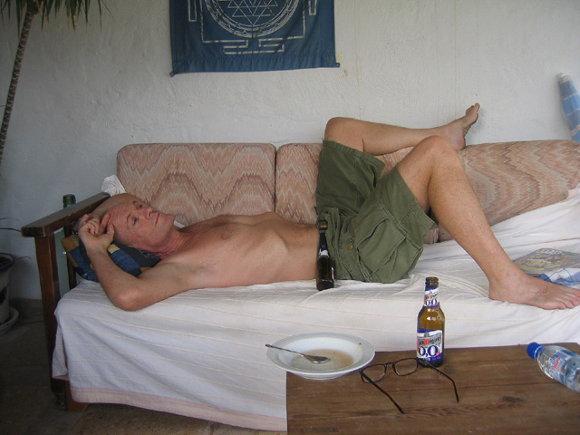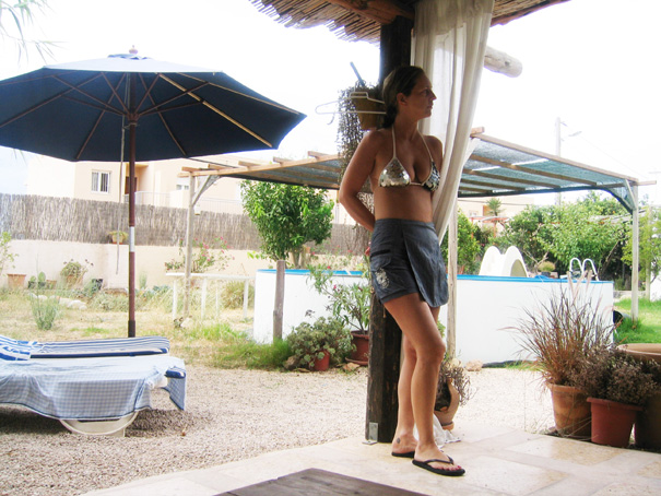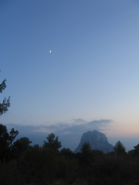 Now, strange things happen sometimes in Ibiza. A couple of years ago, my friend Bonnie introduced me to her friend Rochelle in Houston. Rochelle went to Ibiza in the early '70s via a British mail van and most of Europe with her kids. She has a shop there on the beach at Cala D'hort overlooking Es Vedra (the sleeping dragon) and lives in Houston part of the year and Ibiza part of the year. The island of Es Vedra is one of the most magnetic places on earth. Very magical. So, we were supposed to go see Rochelle last year but two weeks gets shorter when you're living them and we never managed. This year I met her again at my jewelry party in Houston. As our vacation wound down we started talking about going to see Rochelle. There were just a few days left. We came home at dawn one morning after seeing Ferry Corsten and just slept and then lounged around the house. In the afternoon Mike needed to go to the internet cafe to do a few work things. At the very last minute I decided to go with him just to get out of the house. He let me off at the cafe because there was no parking in sight and it took ages for him to park and walk back. I went in, ordered a juice and a tostada and sat down at a computer. I sensed someone walking by me and looked up, it was Rochelle. Until that moment I wasn't sure I'd remember what she looked like. But when I saw her I knew instantly. She didn't recognize me at all until I said who I was. She had just come in to use the bathroom. She almost didn't. That's the kind of thing that happens when you travel. A few seconds either way in either of our schedules and we would never have seen each other. I'm so glad I did. It was even more chancy because she had only just arrived on Ibiza and was heading out again very quickly as she is caring for her mother who has alzheimers. We joined her that evening at Cala D'hort on the beach and then went back to her house in the hills overlooking Es Vedra and drank some wine and watched the sun set and the moon rise. Another friend of hers joined and it was very very pleasant.