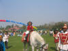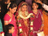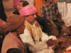 the groom arrived on his white horse with the red and white fluorescent lights in procession and the wedding band, his family dancing madly around them and money being given on all sides for the new couple. I'm not sure if the young boy sitting in front of the groom on the horse was a younger brother or not