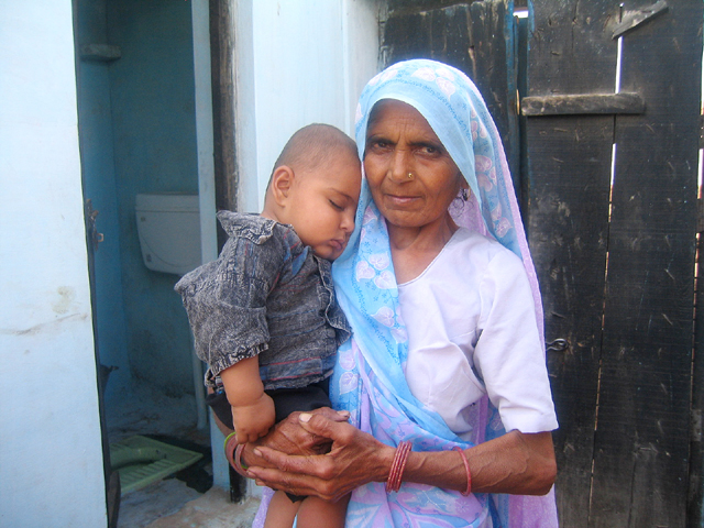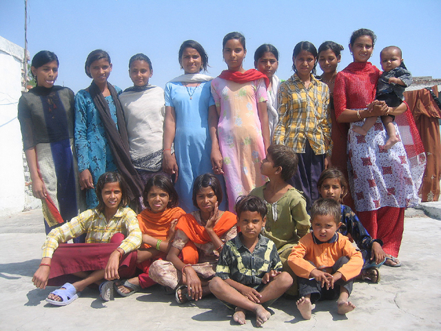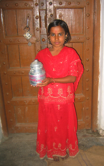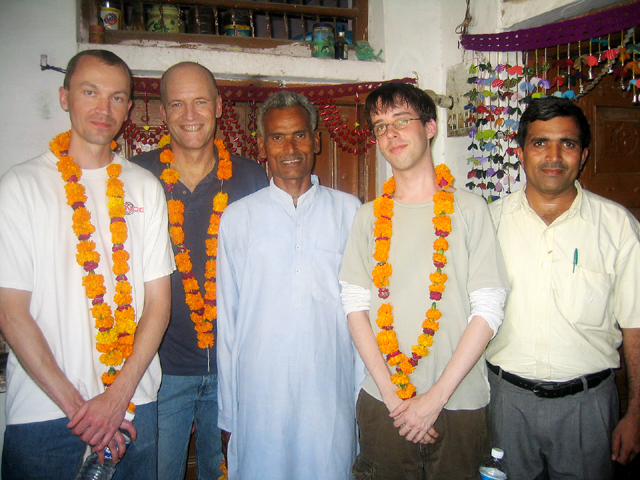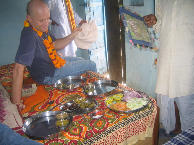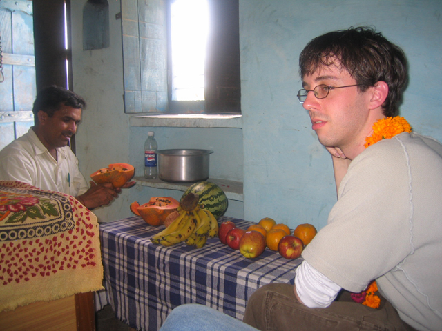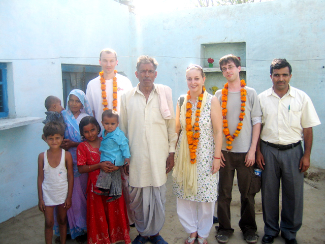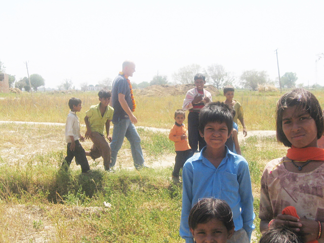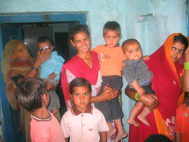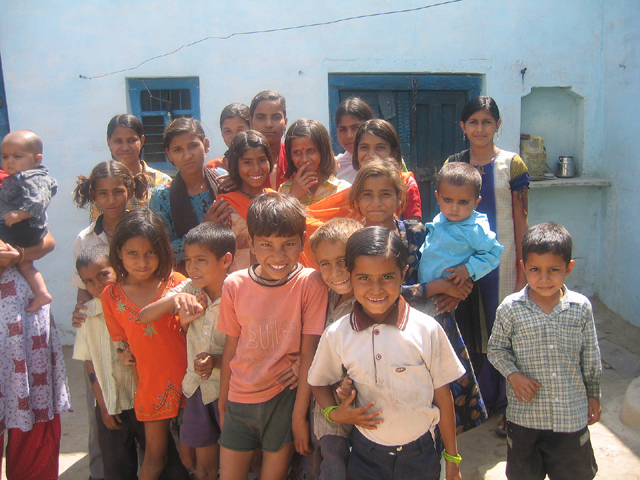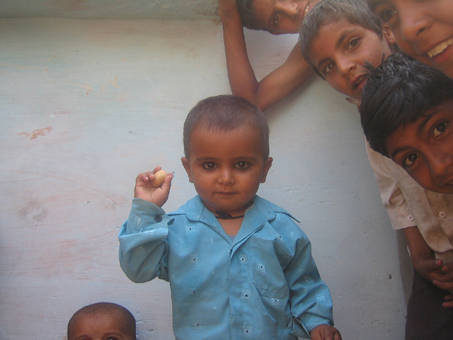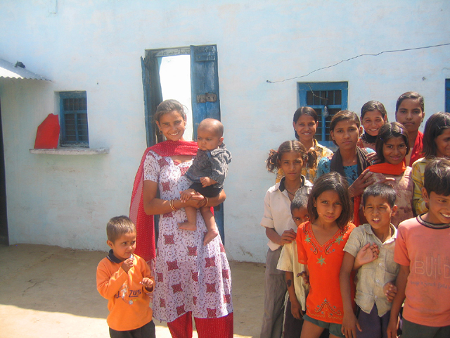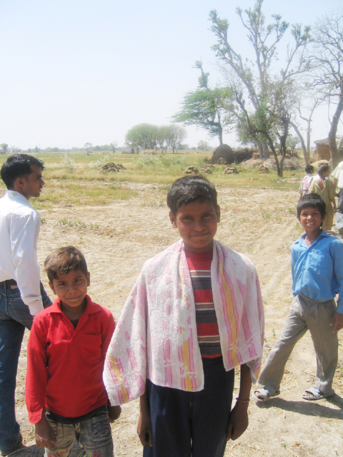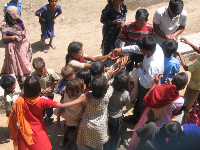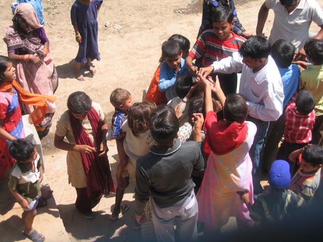 we brought a huge sack of candy for the village children, Raghuraj's brother is swamped while handing it out