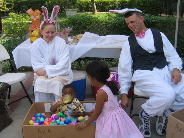March 26 was a day of contrasting events. It started very early with the Easter Party for children at Roosevelt house which is where the Ambassador and his wife live. It was a lovely morning and the kids seemed to have a wonderful time. I worked the tattoo table along with Helen and Karl and applied numerous bunnies, chicks, lambs, lizards, frogs and other tattoos to little people.
