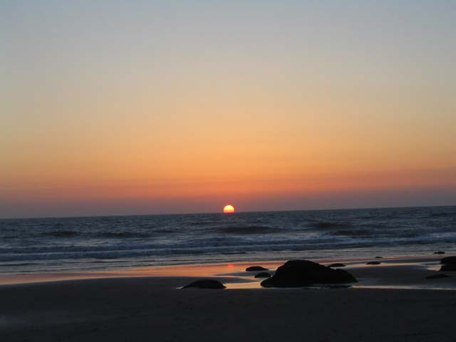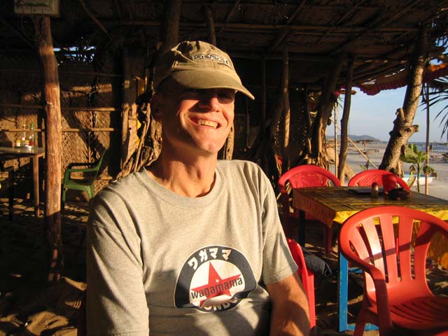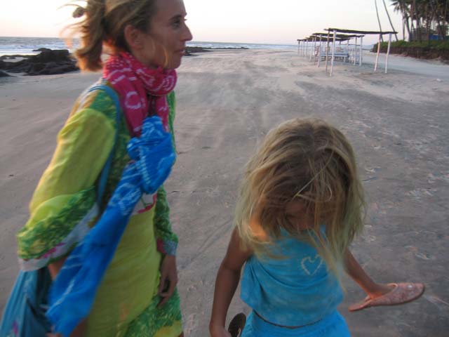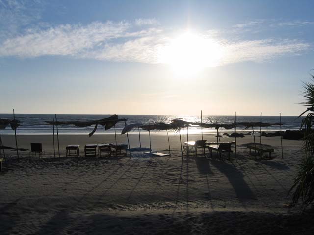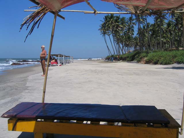 We took a few days and went to Goa for the first time. Goa is wonderful. So clean after the ubiquitous filth of Delhi. Lots of bright sunshine on little white churches and temples and green banana trees, coconut trees, mango trees and plants of all size and description. In the mornings the sound of the animals was loud enough to wake you. Monkeys, cows, dogs, cats and birds of all descriptions and sizes. The beaches are very wide, long and clean. When we took a walk we were often the only people in sight. The water was warm but a bit sandy for my taste. Still nice to play in though. The beach we went to, Asvem beach was not crowded at all but when we went to the Saturday Market at Baga it was packed with tourists, primarily German, Russian, British and French from the sounds around us. People were friendly and we stayed with Jane and her children. It was such a wonderful trip and we hated to leave though I did get sunburned (stupid!) and am staying in for a few days using fresh aloe and other moisturizers and hoping I don't peel.