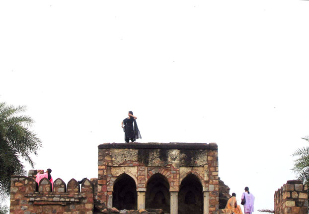 Passers by at the Lotus Temple