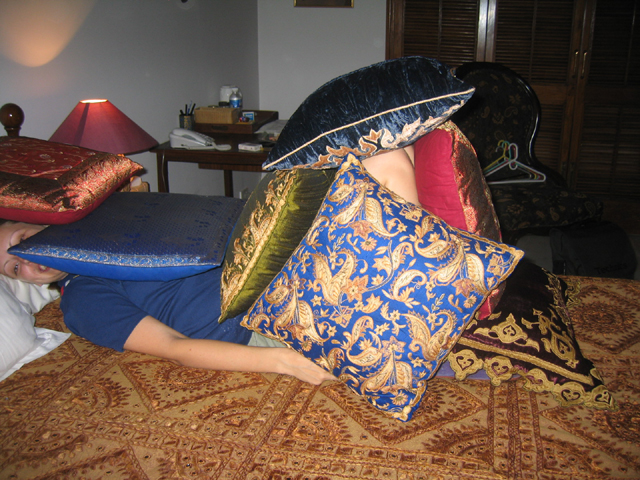hides in the pillows so she doesn't have to go but then....PACHOW!!!!