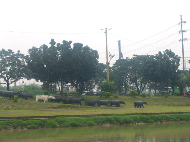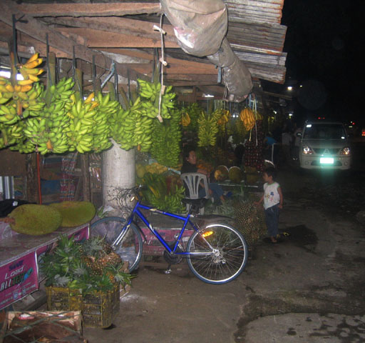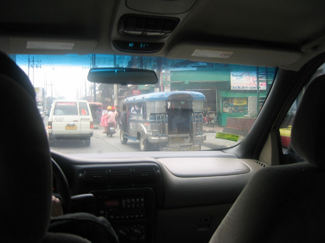 It seemed much much cleaner than India. That of course is not hard but still, they have a large number of poor in the Manila area but I did not see so much poverty related trash. Beth and Charlie's neighborhood is clean, felt safe, had wide tree lined avenues with people jogging and walking, large green areas with no animals grazing, no people living on them and with not a single piece of trash on them. There didn't seem to be that sullen greediness that seems to overtake much of life in India. There was the same "hello madame" from shopkeepers but not in such a pushy and relentless manner. Manila proper is frankly not much to look at. Our hotel while comfortable was nothing I felt the need to photograph and the view from the restaurant atop the hotel was pretty only at night. During the day it was fairly bleak. Manila seems full of projects that used to be and have fallen into disuse or almost were or are going to be. Once out of the Manila the countryside is beautiful with it's banana trees and pineapple groves. I enjoyed one aspect of Manila in that the shopping still has plenty of the flavor of the country available but has REAL department stores with employees who are there to help, not there to overwhelm you, be over solicitous or follow you nonstop around the store. There is plenty of western influence in dining and shopping that is sort of a relief to be around. They have a lot of the conveniences of the west, large spacious gymnasiums, supermarkets with broad aisles and loads of choices and prices were reasonable. They have a large problem with stray animals and with the help of Beth P. and her vet we were able to rescue one small kitten who was eking out a pathetic malnourished existence in front of the hotel. If I could have wished one thing it would have been more vegetarian options available in Philippino food. Other than fruit the veg option just doesn't exist. meat is in everything. Western restaurants seemed to provide plenty of veg options though.