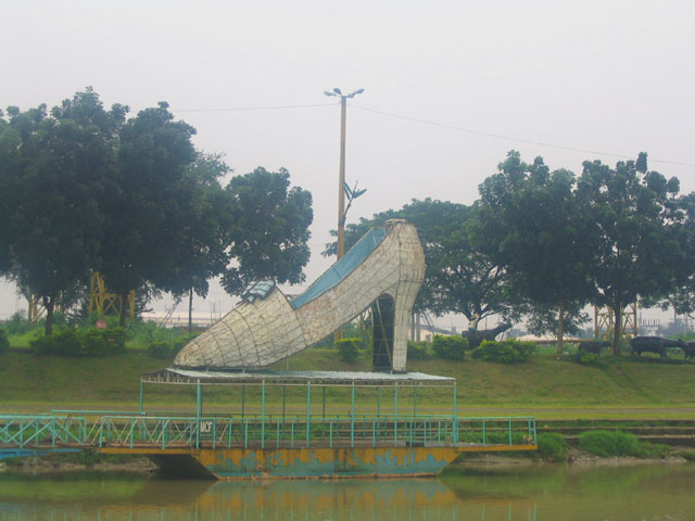 Saturday we took a trip out to Marakina, home of all things shoe. I wanted to see the shoe collection of Imelda Marcos. I was told that the collection has slowly become something of an embarrassment and has been moved several times further and further out of Manila. A small portion of it is currently housed in the Shoe Museum in Marakina, a city that lives on shoe manufacture, along with shoes of other notable persons and shoe oddities. I wasn't supposed to take photos but the guard let me anyway. Marakina seems to be a great home for folk art as well as we saw 4 giant shoes one of which is supposed to be in the Guinness Book and also other folk art pieces