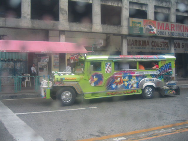 I fell in love with the jeepnys though I don't think I'd like to ride in one. They put me in mind of the lowriders of the states. They are sort of a cross between a bus and a jeep, they are very cheap public transport and some of them are works of art in the same style as lowriders and vans. Some of them are super ornate and some very plain, they often carry religious messages, or airbrushed film and music stars. My favorite are the silver colored ones that look like a cross between Mad Max and the Munsters car. I was not able to get that many good pictures but here are a few.
