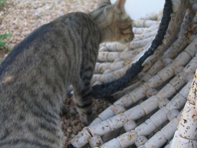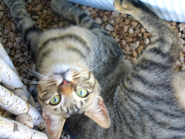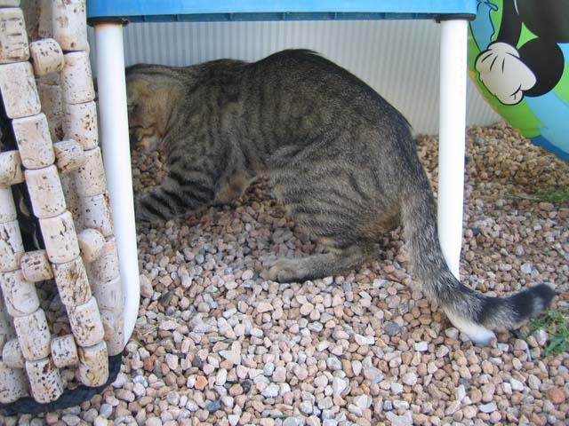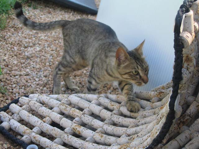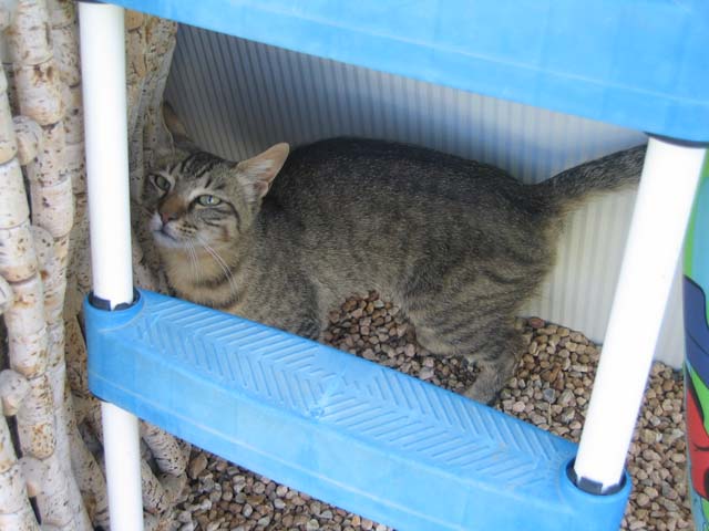 Here he is stalking a lizard, he ate the tail but I was able to rescue the rest of the lizard and release it over the wall into the outlands