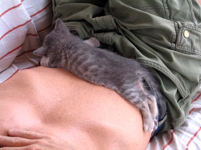 The kitten series. This year when we arrived there were 3 three week old kittens who had been orphaned about 4 days before we arrived. I had the great joy